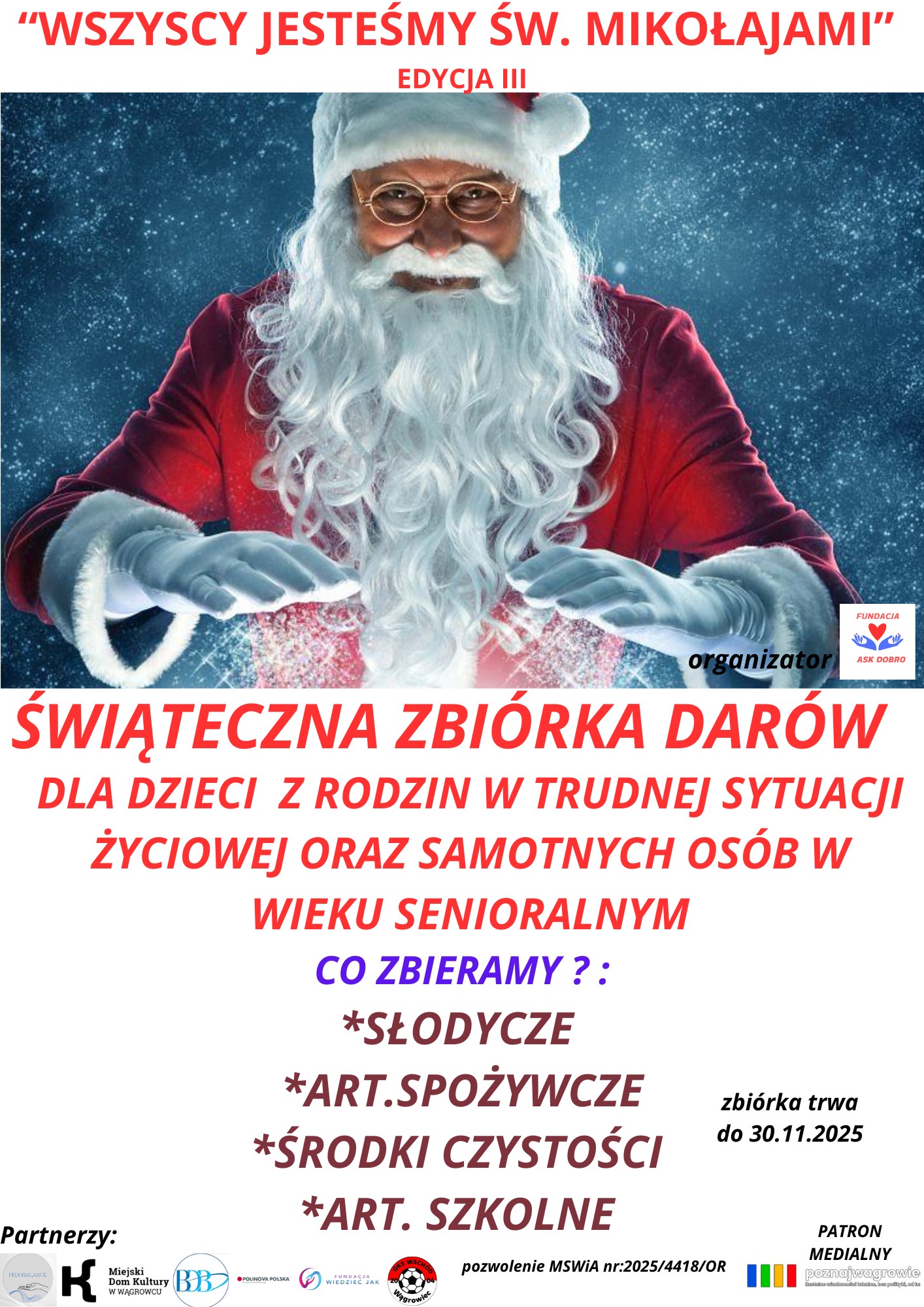 Rozpoczyna się trzecia edycja świątecznej akcji charytatywnej „Wszyscy jesteśmy Świętymi Mikołajami”, organizowanej przez Fundację ASK…